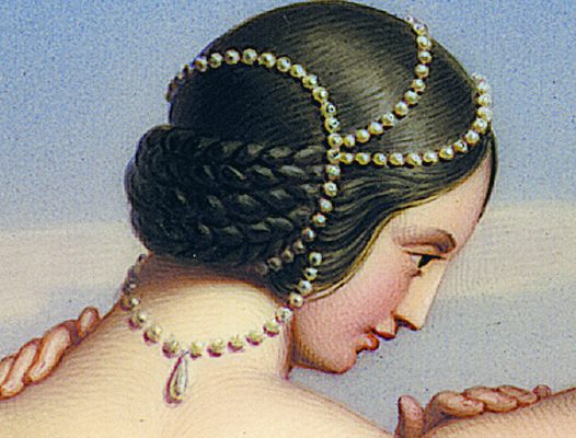 With the virtuous hand required for miniature work Marie-Victoire Jaquotot paints and edit in extraordinary fine execution, the adornement of the Graces. They, too, as in Raphael, are adorned with jewels offered by the sea, element of life, but instead of red corals, they carry necklaces of candescent pearls, for millennia a symbol of love, […]
